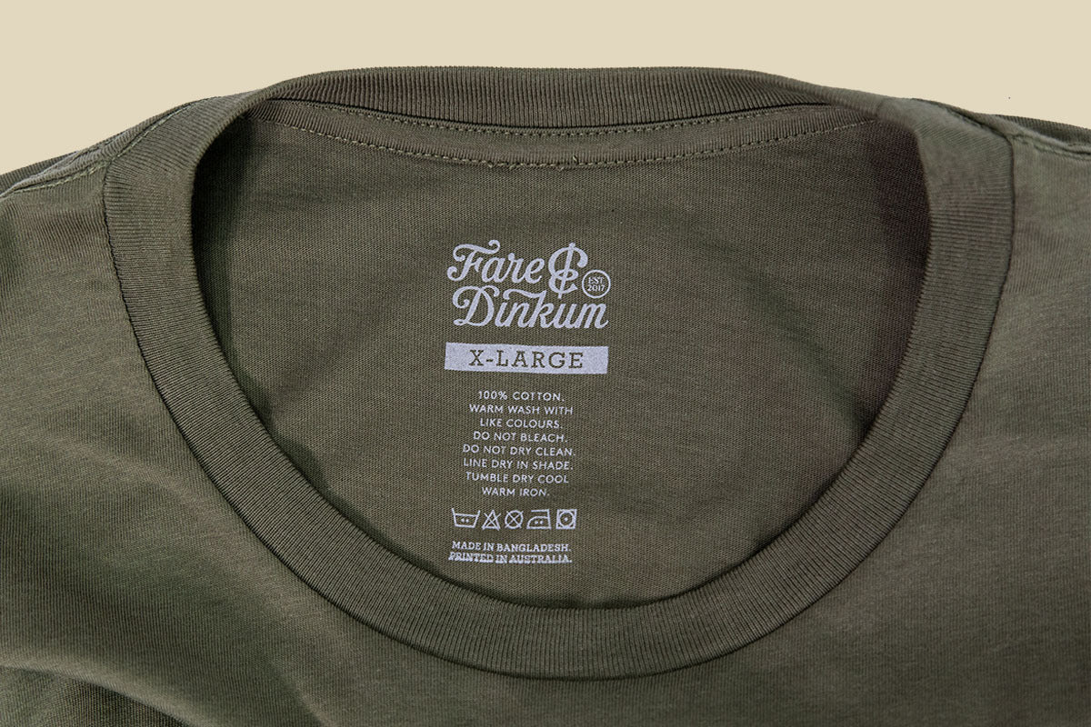 All tees are screenprinted in-house on high quality, butter-soft Aussie cotton. Featuring a thick neck and relaxed crew fit.