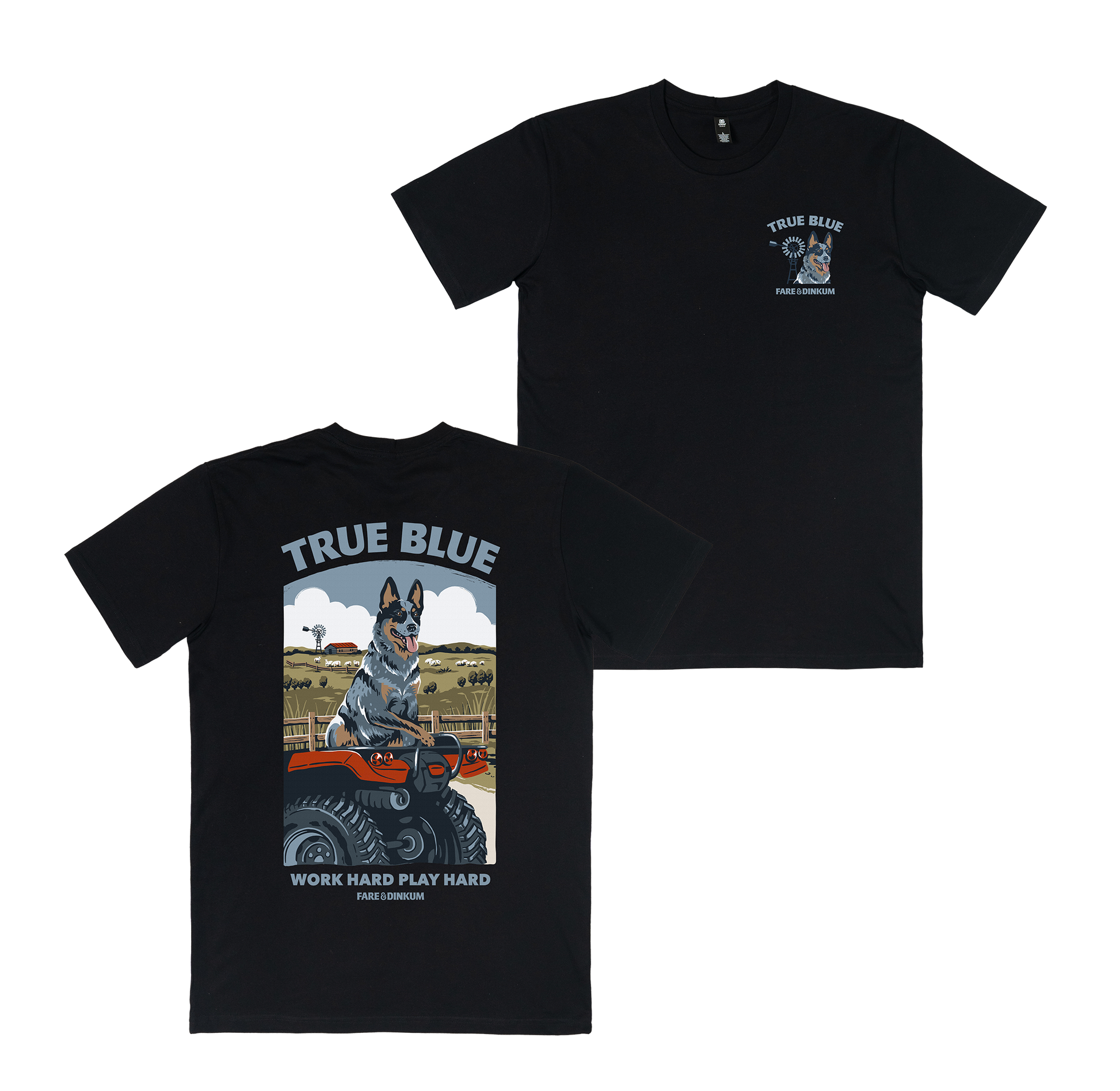 Crafted from some ripper materials, this you beaut shirt is as rough and tumble as the Bluey it celebrates. Whether you’re slogging hard in the yard, making tracks or simply enjoying a coldie at the end of the day with your bestie, this wearable piece of Aussie art will stand the test of time, much like our love for the iconic Blue Heeler.